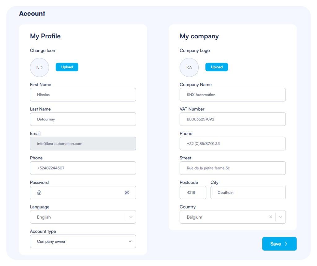 After registering and logging into ElauPro, you can access and manage your user profile. This section contains your personal information, company details, language preferences, and account type settings.
