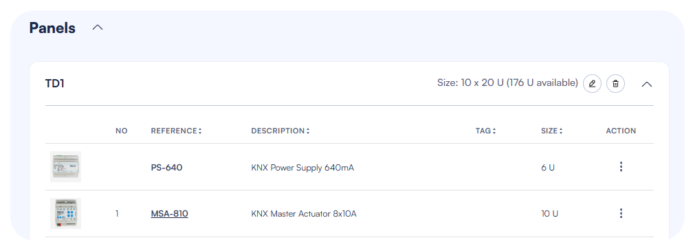 The Panels section in ElauPro allows you to define and configure the actuators needed for your KNX project. This is where you’ll organize all the physical components that will be installed in your electrical distribution panels.
