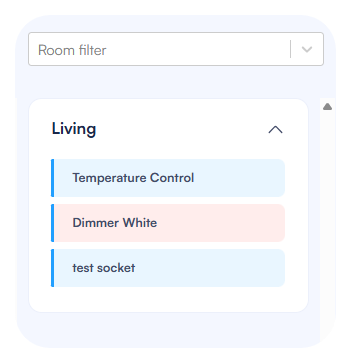• Description: Shows the room name and device name (e.g., “Living room – Light 1”)