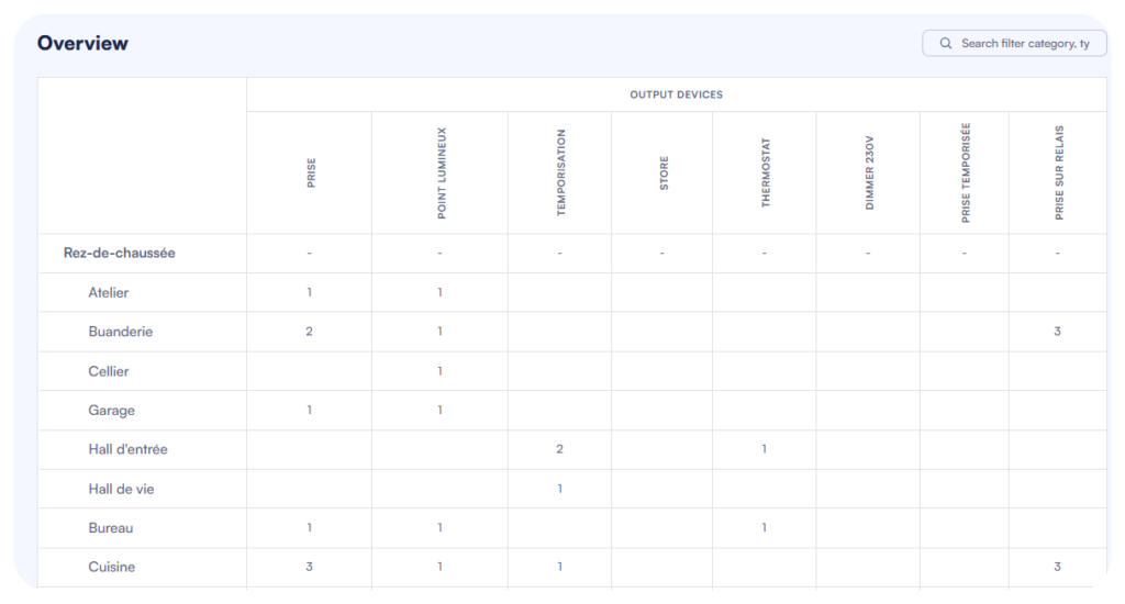 The Project Overview section provides a comprehensive summary of your project configuration, allowing you to quickly assess the devices deployed across your installation and generate material lists for procurement.