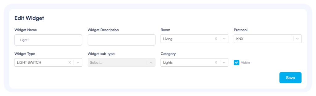 • Widget Type: The type of control (e.g., switch, dimmer, analog input)
