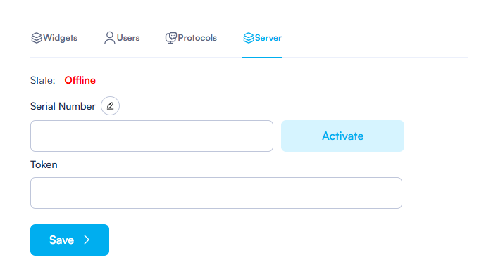 NOTE: If the server status indicates “Not Activated”, click the “Activate” button after copying the server SN and Server Token. The status should change to “Online”.